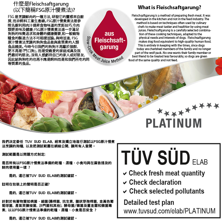 PLATINUM『白金』西班牙黑毛豬無穀物成犬配方採用高品質人類食用級數的成份製造: